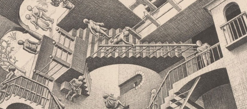Escher's Relativity ; Fair use (Old-50), https://en.wikipedia.org/w/index.php?curid=29612930